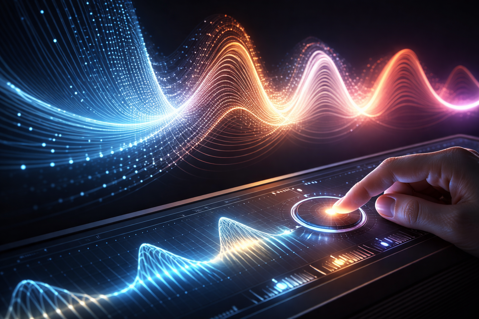 Light intensity and tone shaped by frequency patterns—like waveform lighting presets.