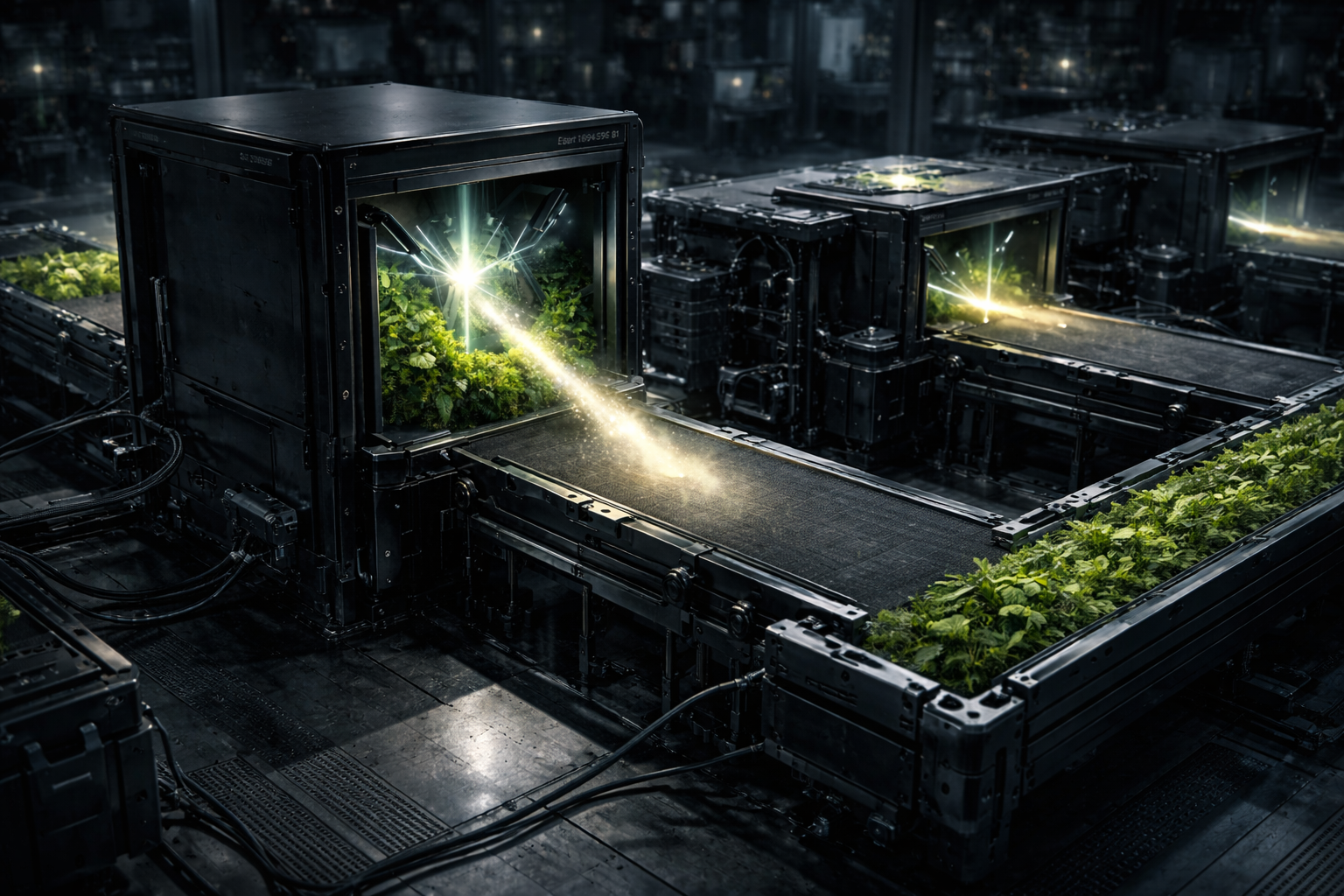 Advanced fiber-optic arrays route harvested light data back to the central processing unit.