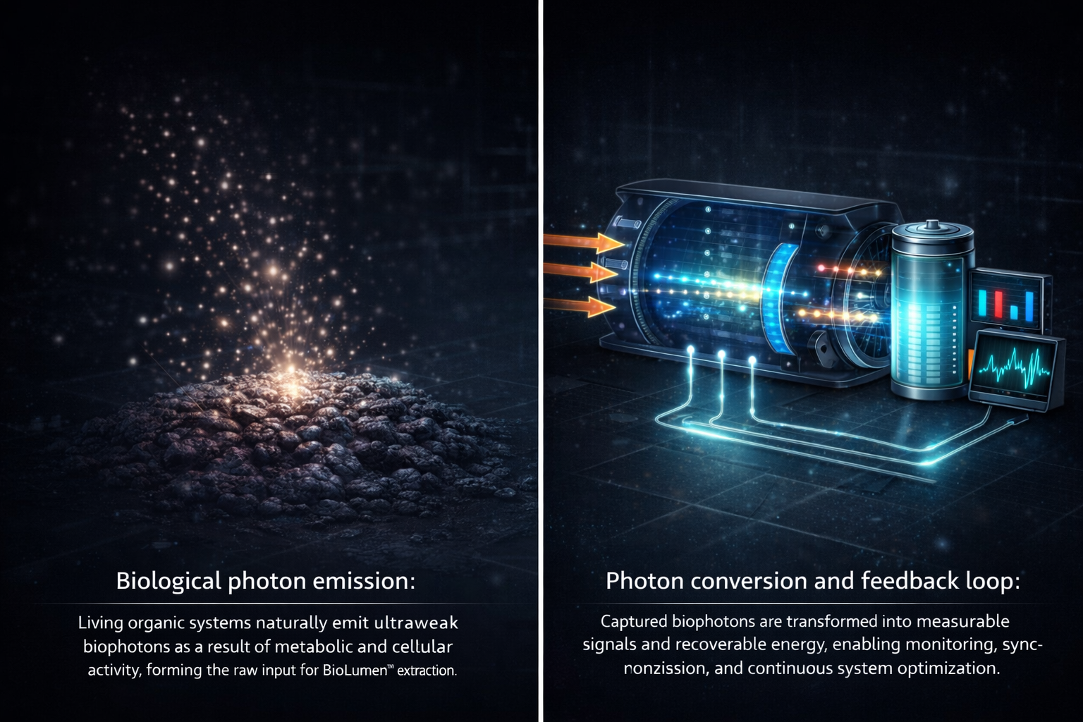 Non-invasive resonance technology for biological energy recovery through biophotonic extraction.