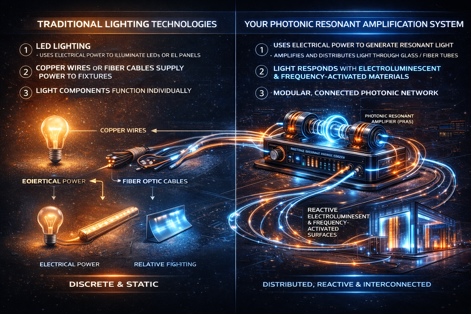 Architectural surfaces may incorporate RPAS collector and excitation layers beneath structural materials, allowing photonic response to emerge through resonance rather than through attached lighting fixtures.